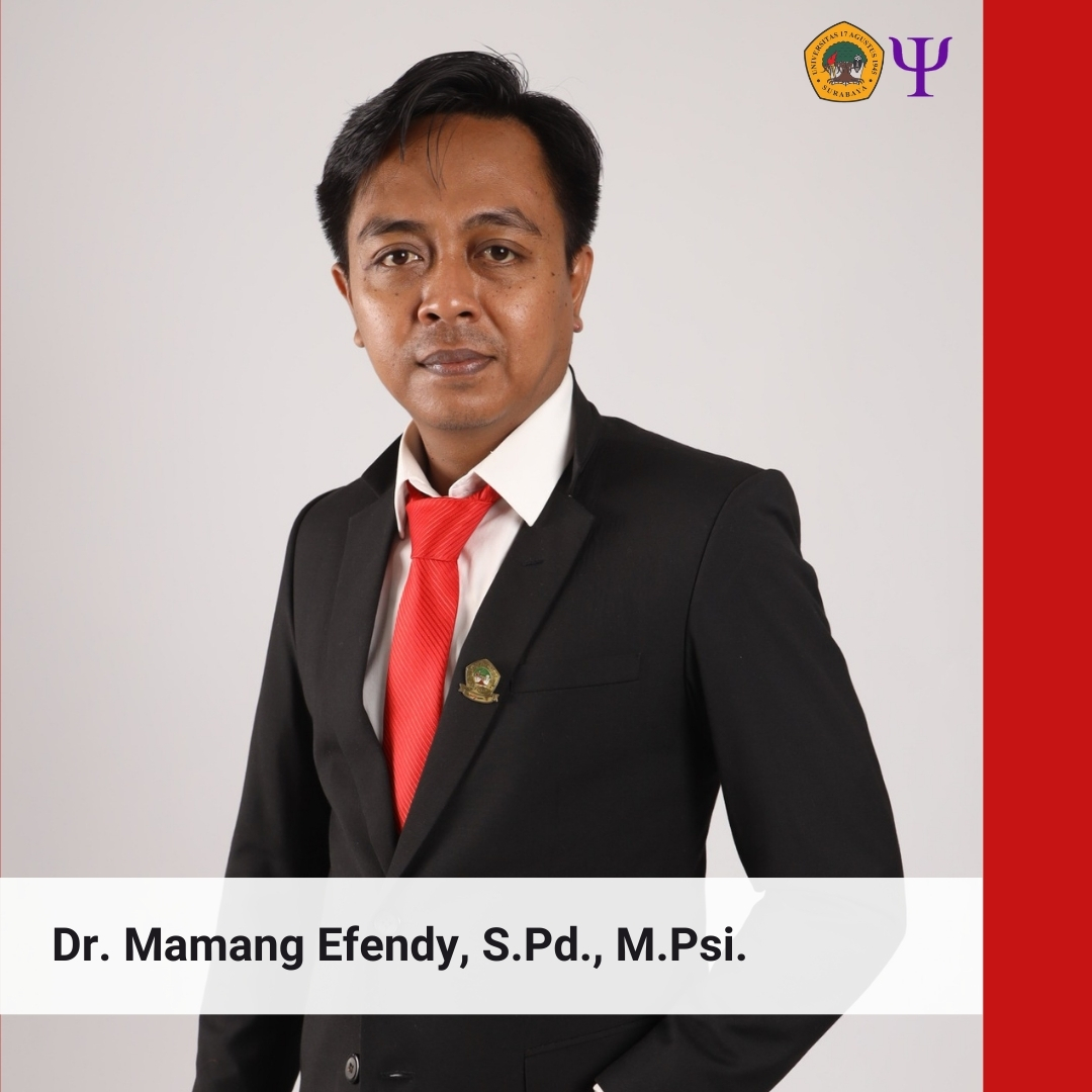 Selamat dan sukses atas pelantikan Dr. Mamang Efendy, S.Pd., M.Psi. sebagai Wakil Dekan baru dari Fakultas Psikologi Universitas 17 Agustus 1945 Surabaya periode 2025–2029. Semoga amanah yang diberikan dapat dijalankan dengan penuh tanggung jawab, membawa semangat baru, serta memberikan kontribusi nyata bagi kemajuan fakultas dan pengembangan dunia pendidikan psikologi.