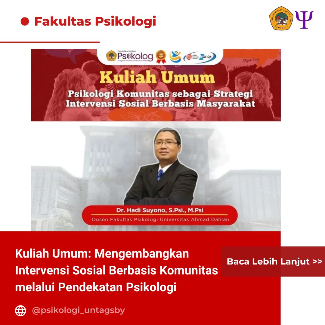 Kuliah Umum: Mengembangkan Intervensi Sosial Berbasis Komunitas melalui Pendekatan Psikologi