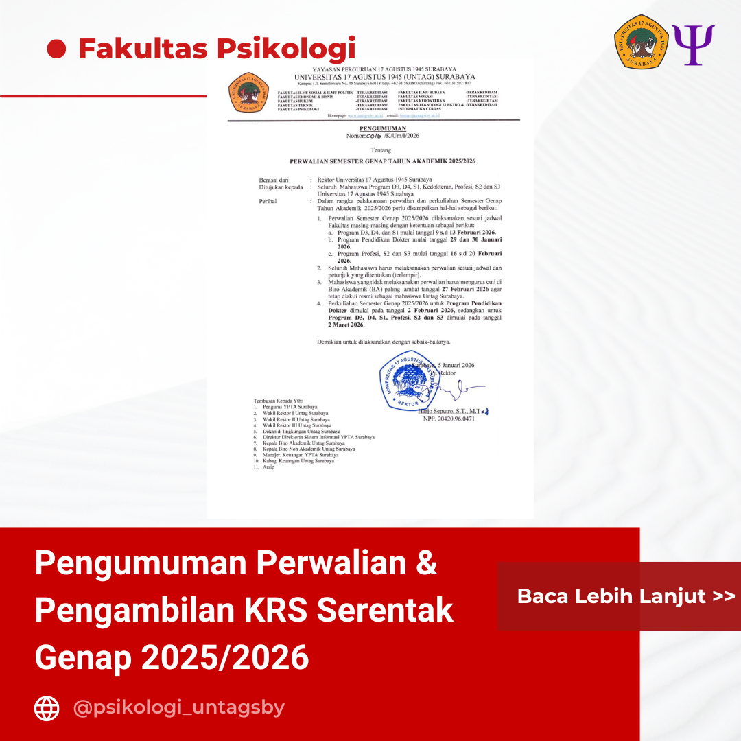 Pengumuman: Libur Sementara Kegiatan Akademik Fakultas Psikologi UNTAG Surabaya