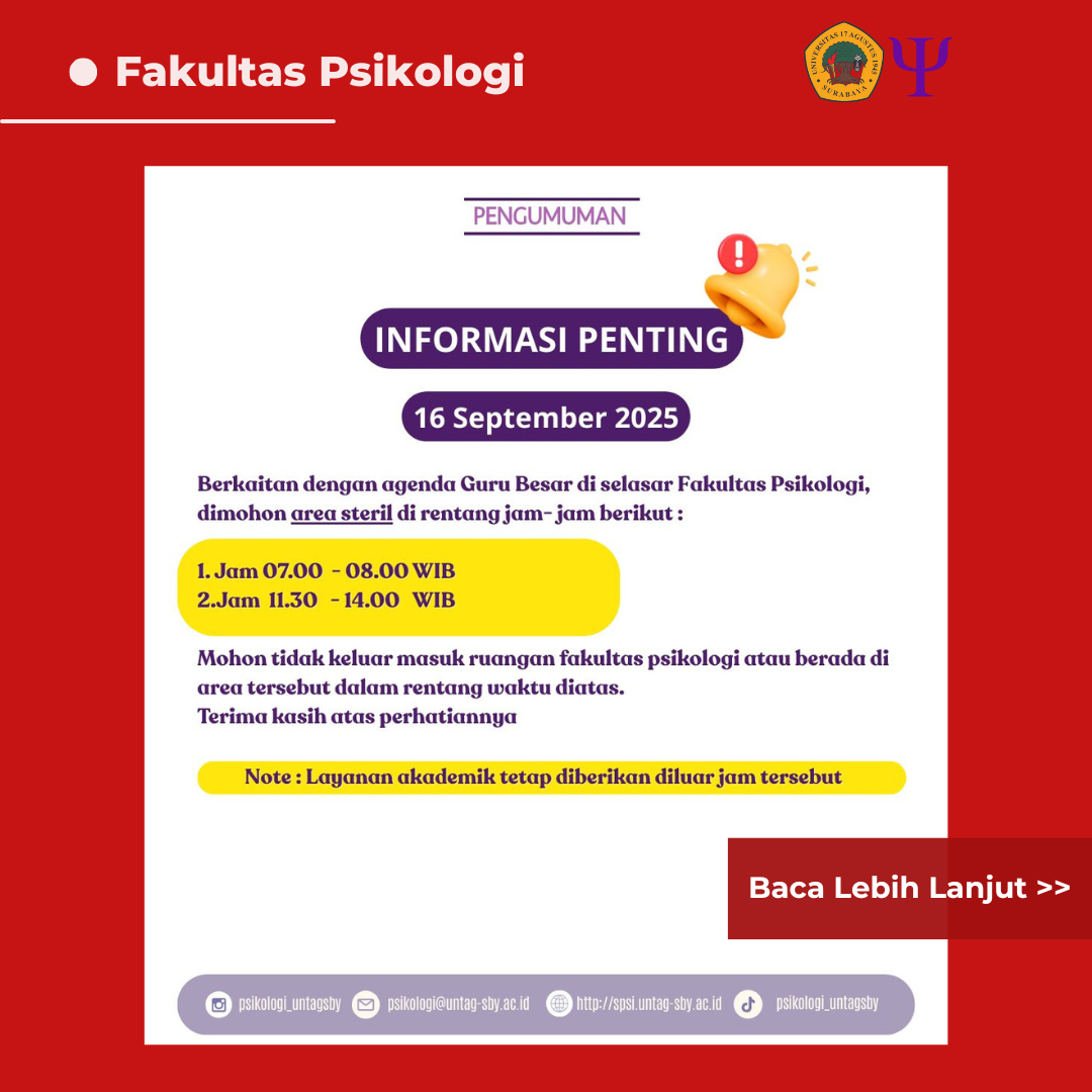 Pengumuman Penting: Sterilisasi Area Fakultas Psikologi pada 16 September 2025 Agenda Guru Besar